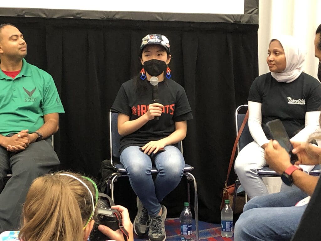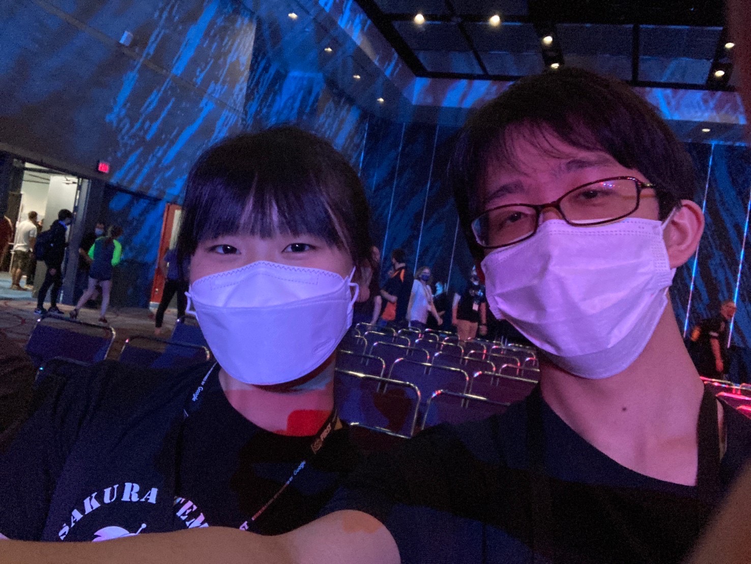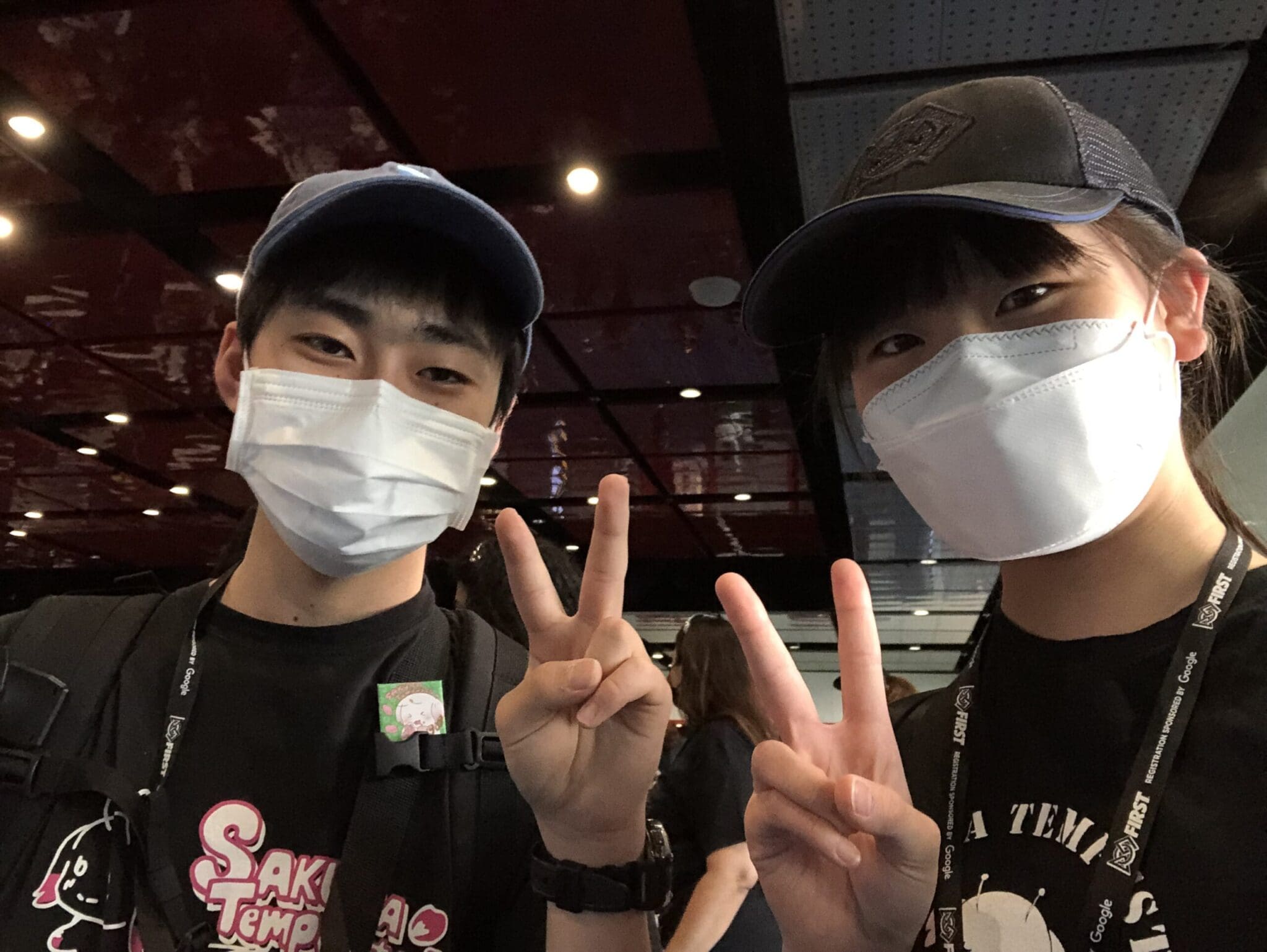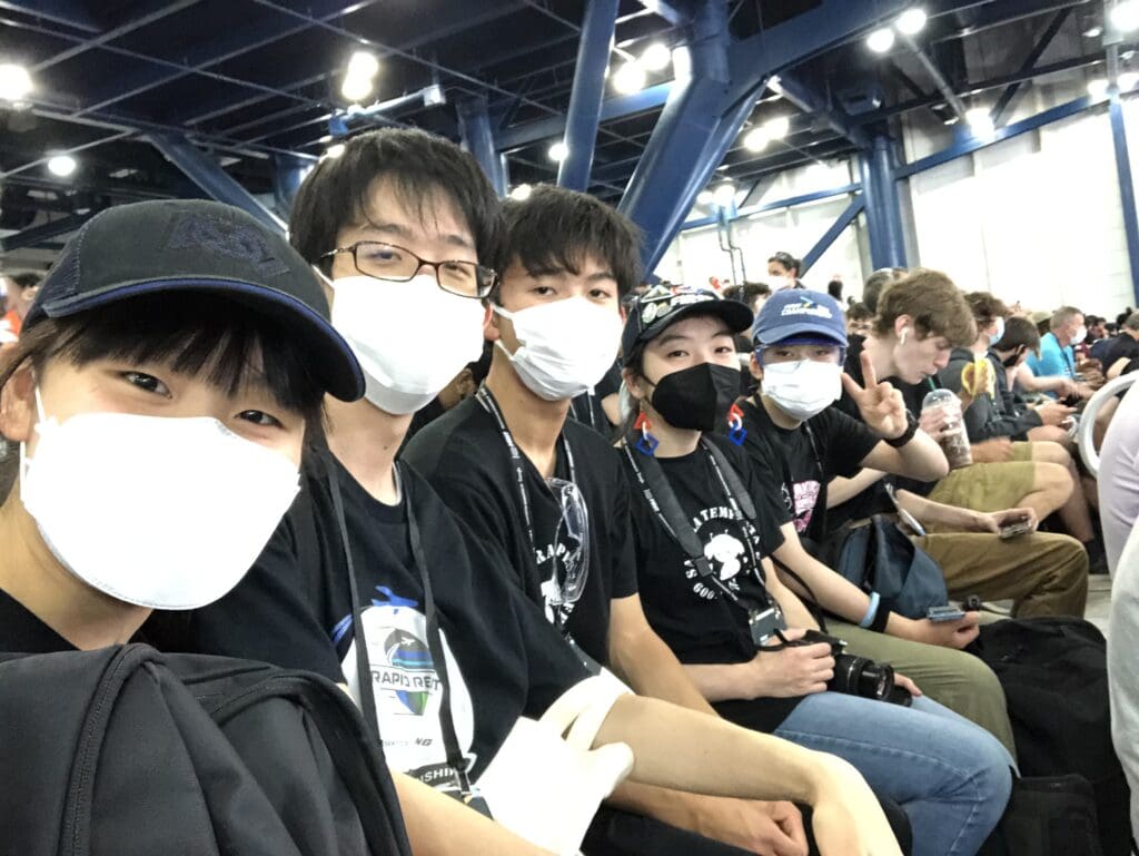ちなみに、少し見えづらいですが、神が来ているのは今回Championshipで買ったTシャツで、背中側にMENTORという文字とチーム番号の6909が入っています!メンターのはずなのにメンバーのように見えてしまうのでこの文字を入れて作ったそうです。確かに、実際大会に来てみると、やはり日本人は若く見えるのか、神(大学3年)は高校生くらい、私(高3)も中学生か、もしかしたら小学生くらいに見えているのかもしれません💦