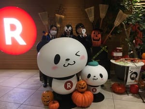 楽天クリムゾンハウスに入るとすぐにハロウィーン仕様のお買い物パンダがいたので早速記念撮影(^^♪